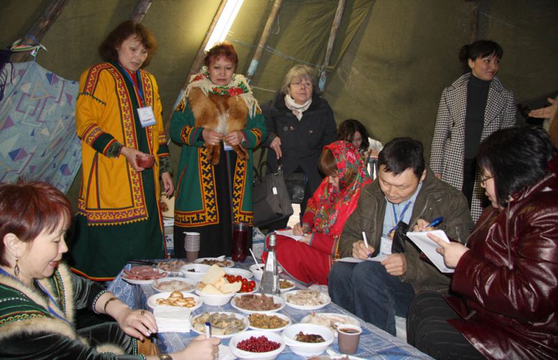 Подчеркнем: гастрономический конкурс выставки-ярмарки «Сокровища Севера» может по праву считаться одним из самых изысканных и интересных в России. Обилие блюд и того, из чего они приготовлены, не поддается обычному описанию. Северное изобилие надо просто принять, как данность. В одном только чуме земляки - ненцы из Пуровского района Ямало-Ненецкого округа, специально для конкурсной комиссии, накрыли столы, на которых уместилось более 100 разных блюд и около сорока видов напитков.