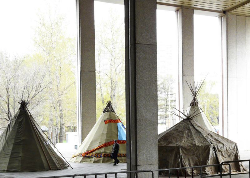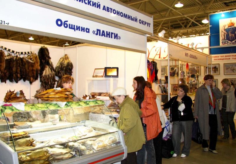 Павильон 69 Выставки достижений народного хозяйства в Москве стал своеобразной Меккой для 40 национальностей нашей страны. Идея проведения выставки народов Севера зародилась в Ассоциации коренных малочисленных народов (президент – депутат Государственной Думы РФ от Ямала Григорий Ледков), и сегодня можно смело утверждать, стала славной традицией, явлением в столичной выставочной жизни. Ежегодно в течение последних десяти лет северяне радушно приглашают к себе в гости тысячи российских и зарубежных гостей. Причем, не только посмотреть на хлебосольные стенды, но в самые настоящие чумы, которые они разбивают у входа на выставку. На открытой площадке традиционно расположилась самая популярная экспозиция «Национальное жилище»: 7 северных чумов ненцев, хантов, эвенков, долган. Здесь можно и убранство чума посмотреть, и нафотографироваться всласть, погладить настоящего северного оленя, «хлебнуть полной ложкой» северного бытового колорита, и пусть на короткое время, но почувствовать себя северянином.
