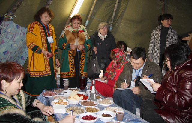 Продовольственный конкурс SlowFood Ковчег вкуса проводился на выставке совместно с Ассоциацией коренных малочисленных народов Севера, Сибири и Дальнего Востока России, ключевыми целями деятельности которой являются сохранение и поддержка традиционного образа жизни, традиционного природопользования, языков, культур. Национальная местная еда всегда была в этом списке по умолчанию, как воздух, вода. Однако в последние годы благодаря глобализации мы видим влияние индустриальной еды на сознание, здоровье, уклад особенно в молодежной среде. Инициативные проекты, идеология, опыт SlowFoodпо сохранению и развитию местных рынков продуктов питания, безусловно, интересны и значимы для малочисленных народов Севера, живущих в России, поскольку традиционный уклад жизни многих народов сохранился практически в первозданном виде. Оленеводы, охотники, рыболовы, собиратели до настоящего времени используют как традиционные методы добычи, так и традиционные методы приготовления продуктов. В той или иной мере подходы по сохранению местных продуктов питания, продовольственных цепочек созвучны с принципами деятельности Ассоциации.