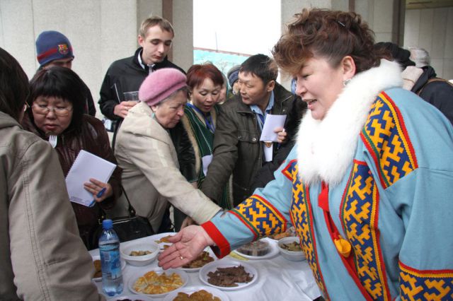 Особую ценность представляют национальные, так скажем, исторические продукты, без которых невозможно представить себе жизнь коренных малочисленных народов. Если Вы думаете, что это только мясо и рыба, то глубоко ошибаетесь, впрочем, разновидности приготовления рыбных и мясных блюд не ограничиваются только рецептами того или иного народа, часто свою изюминку в приготовлении той же оленины свято хранит хозяйка конкретного чума. А их у малочисленных коренных народов ой как много! Там Вас угостят юколой (вяленная на ветру и солнце рыба общины нивхов), улэктэ или хурчаа (сушеная оленина, приготовленная эвенками), строганина из белорыбицы народа юкагиров, мясо и сало морских зверей: моржа, нерпы, лахтака, агибы, ларги, кита (традиционная еда чукчей), саамал, аарах и көйүү (кобылье молоко от якутских лошадей), быштак (сыр из цельного молока, национальный продукт тувинцев - тоджинцев) и много, очень много всевозможной необычной вкуснятины.