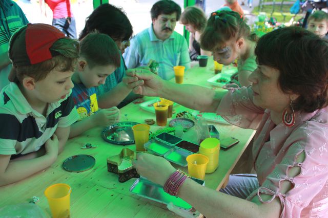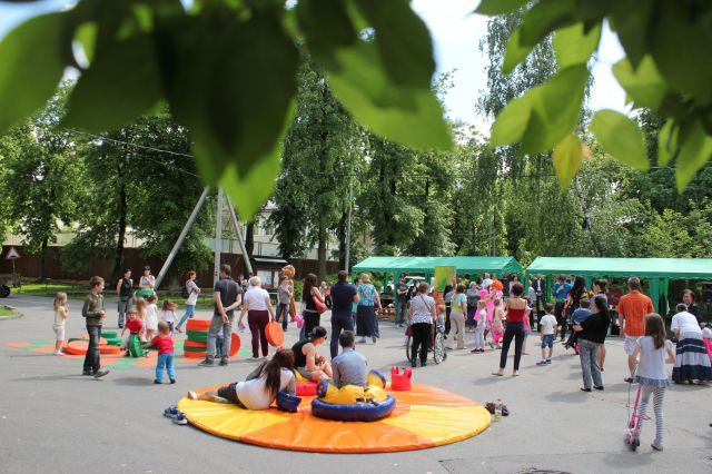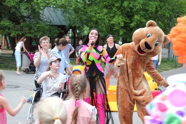 «….теперь улыбнулись в одну сторону и в другую!", - в поселке художников, который расположен в районе Сокол города Москвы, идет оживленная игра. Звучит музыка. Местные  ребятишки  вместе  с  клоунами танцуют, поют песни и водят хороводы.