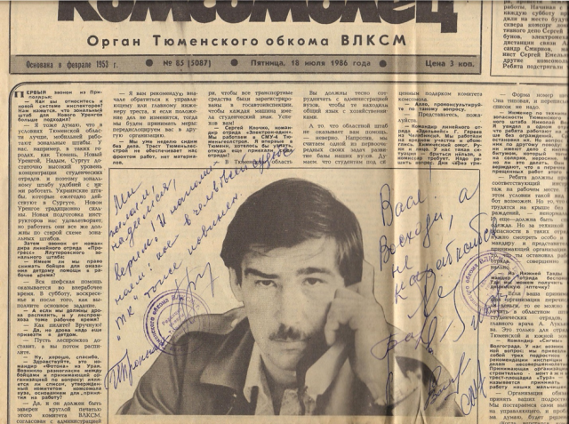 В 1982–1984 годах в должности Первого секретаря Центрального РК ВЛКСМ г.Тюмени я занимался формированием ССО в Тюменском индустриальном институте, Тюменском государственном университете, Тюменском сельскохозяйственном институте. Начальники штаба трудовых дел индустриального института Александр Мажаров и Сергей Клюев в последующем стали командирами Тюменского областного студенческого отряда.