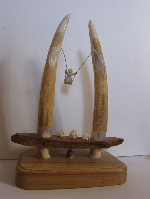 Скульптурная композиция состоит из двух частей; верхняя часть выполнена из естественной формы корневища лосиного рога, олицетворяет Косматое Облако-Солнце, на котором в кругу выгравирован главный «фасадный» вид древнего Тобольска. В старину именно на светлых облаках над холмами впервые привиделся Белый город. В нижней части изображения  на картуше есть надпись «Тобольск». На обратной стороне Солнца имеется изображение Белой Совы-Филина, олицетворяющее достопримечательность Западной Сибири – Абалакский мужской монастырь, который находится в старинном селе Абалак, что в переводе с татарского означает  Белая Сова. Этих птиц в той местности до сих пор множество. По старым преданиям, это души вдов погибших воинов.  С обеих сторон Солнца установлены два Соболя из мамонтовой кости естественной окраски. Соболи изображались в допетровском Сибирском (Тобольском) гербе и условно означали соединение России с Азиатской сибирской стороной. Сверху по Солнцу скачет легендарный Конек-Горбунок, автор одноименной  книги П.Ершов жил в Тобольске. На Коньке сидит Иван с пером Жар-Птицы в руке, миниатюра символизирует Успех, Удачу. Солнце-Облако установлено на подставке-холме из лосиного рога, то есть это как бы Алафеевские горы, на которых на Троицу был основан приплывшими на ладьях воеводами город Тоболеск–Ладейный, потому внизу костяной подставки есть изображение ладьи. В целом, композиция представляет изображение одного из немногих городов мира, которые стоят на холмах (Рим, Москва и другие). Костяная подставка укреплена на деревянной основе (береза).