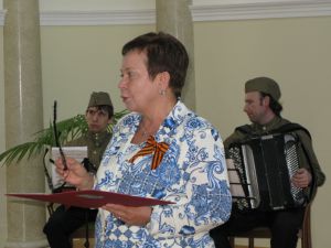 Приветствуя гостей в зале приемов на праздновании приближающегося Дня Победы, Фануза Шарафиевна с сожалением отметила, что все меньше ветеранов присутствует на мероприятиях: кто-то уходит из жизни, у кого-то состояние здоровья не позволяет. В своем поздравлении она о каждом сказала много добрых слов и пожелала дальнейших встреч в полном составе и здравии. Хочется отметить, что ветераны, которые не смогли приехать на встречу – Юрий Иванович Давыдов, Ефим Аркадьевич Луценко, Лев Иванович Ровнин, - просили передать благодарность Ф.Ш.Арслановой: несмотря на рабочую занятость, она лично поздравила каждогос наступающим Днем Победы.