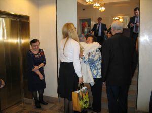 С большим радушием и гостеприимством, вот уже 4-тый год подряд, ветеранов встречала Фануза Арсланова, заместитель Губернатора, руководитель Представительства ХМАО-Югры при Правительстве РФ. Прибывшим ветеранам и другим гостям – членам РОО «Западно-Сибирское землячество» сотрудники прикрепили Георгиевские ленточки – символ воинской доблести и славы.