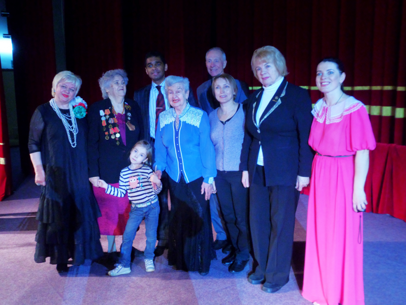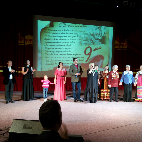Когда в заключении концерта прозвучала в моем исполнении ее песня "Тост за Россию", весь зал ...встал! Вместе с ветеранами аплодировали артистам и наши земляки во главе с В.М.Стешенко и Т.К.Афанасьевой. На память об этом торжестве у нас остались фото.