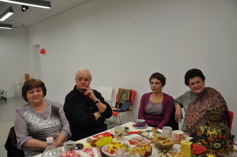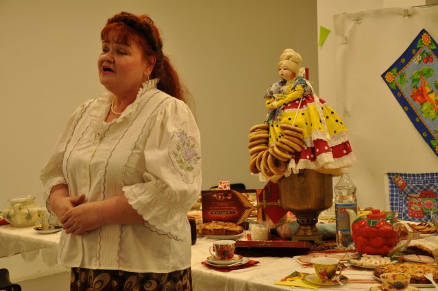 Виктор Одинцев прочитал стихотворение о том, как в начале появления чайной заварки в России повара готовили господам чай. Некоторые думали, что чайные листья нужно использовать как капусту или как приправу при варке супа или борща.  Наталья Архиповна Кашникова исполнила замечательные  бытовые песни нашего Отечества.