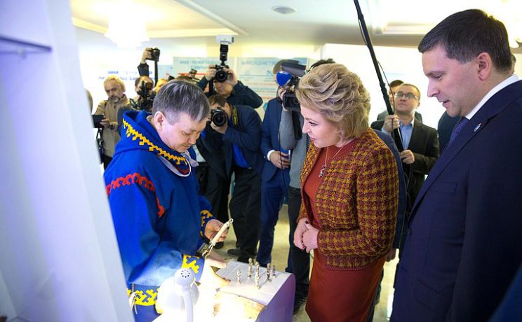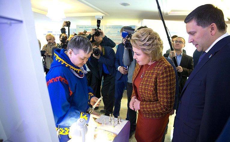 Валентина Матвиенко и Дмитрий Кобылкин осмотрели выставку «Ямал – сердце российской Арктики», которая открылась в СФ. В экспозиции представлены история округа, культура коренных народов Ямала, крупные инновационные проекты, экономические достижения, туристические направления региона.