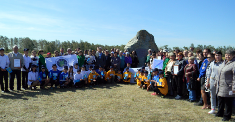 В полном составе экспедиция отправилась в район М.Жумабаева Северного Казахстана. Затем ее участники разделились: большая часть поехала на встречу с акимом (главой) района Кайратом Пшенбаевым, остальные в совхоз «Золотая нива», монтировать целинный знак. У памятного камня уже собрались работники совхоза, ветераны освоения целины, школьники, для которых приезд экспедиции был большим событием. Встречали ее аким сельского округа Олег Стаценко и представитель студенческих отрядов Казахстана Искандер Закаев.